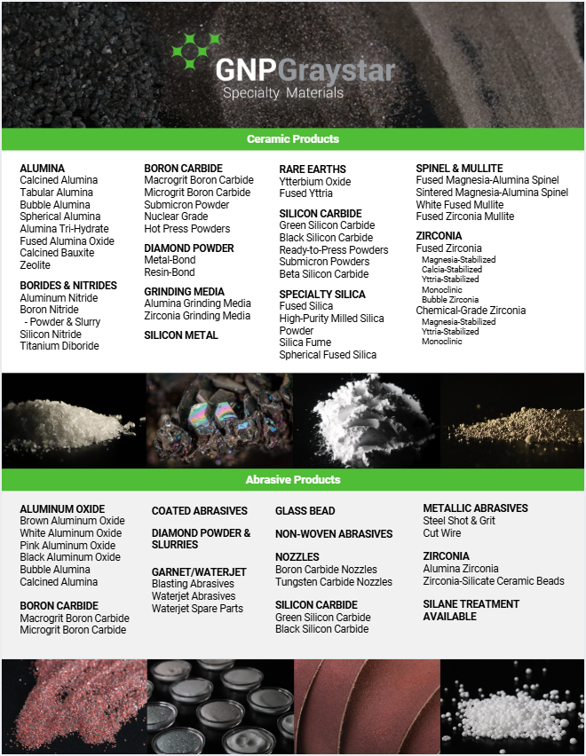 GNPGraystar is excited to exhibit at the Ceramics Show in Cleveland, Ohio. Visit our team to learn more about our advanced ceramic material solutions, materials for manufacturing and/or patching ceramic cores, and our extensive selection of value added services in ISO 9001 certified facilities.
